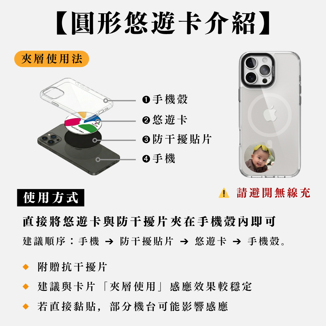 ⭐️ 將心愛的圖案、照片或設計印製在圓形悠遊卡貼。