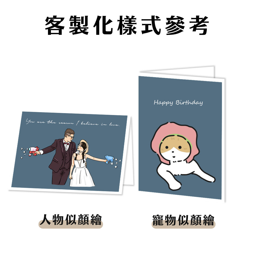 專為客製似顏繪設計的對折卡片,讓你的祝福不只是話語,更是一份精緻收藏