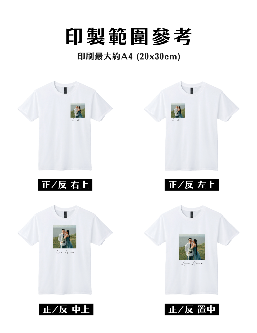 - 多樣客製化設計,印上專屬圖案、文字或照片,打造獨一無二的服飾