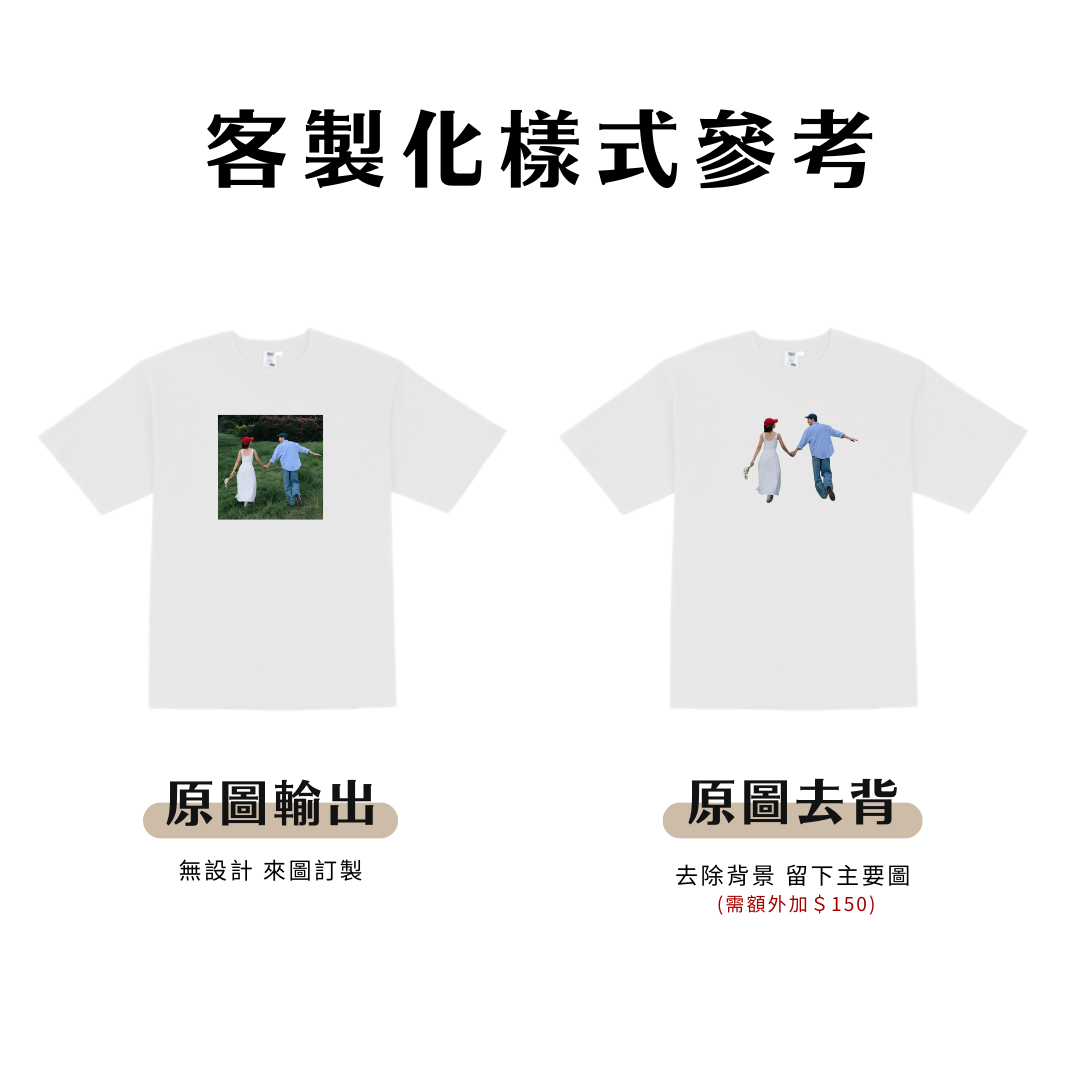 - 多樣客製化設計,印上專屬圖案、文字或照片,打造獨一無二的服飾