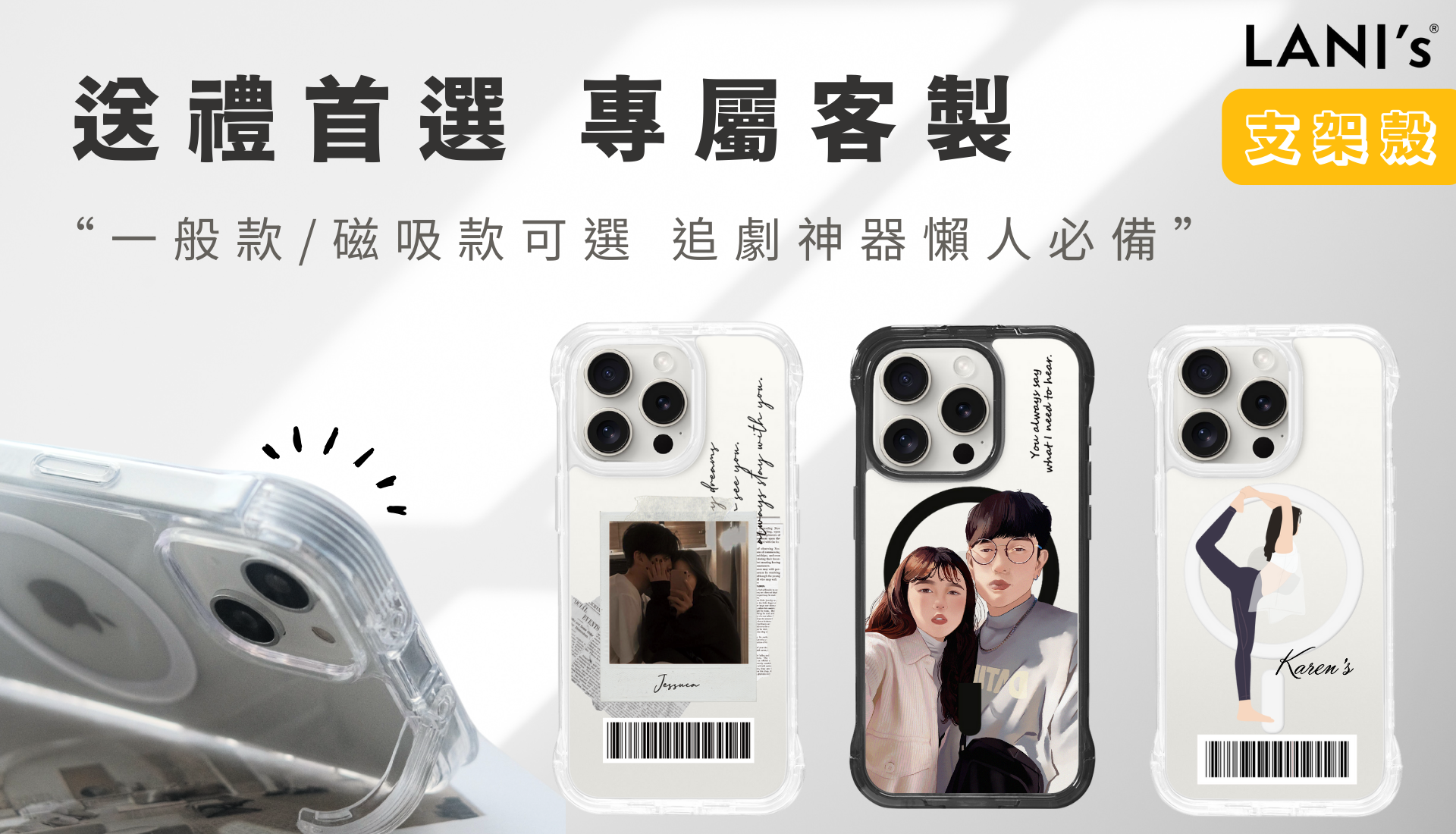 LANI's 懶人支架防摔手機殼,內建懶人必備的 ⭐ 四角支架,支援MagSafe ⭐ 無線充電。另有 ✨ 加高鏡頭圈、✨ 防摔矽膠,給你超越軍規的全方位防護。