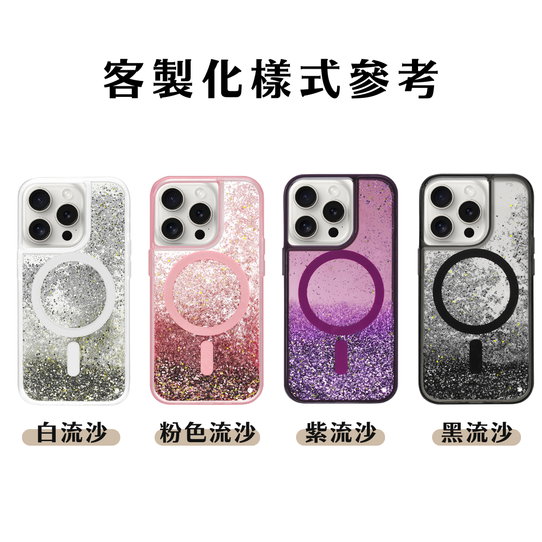 環保無毒的流沙,在手機殼上流動閃閃發光搭配似顏繪客製設計,創造獨一無二的時尚單品⚡ iPhone MagSafe 支援:充電超便利