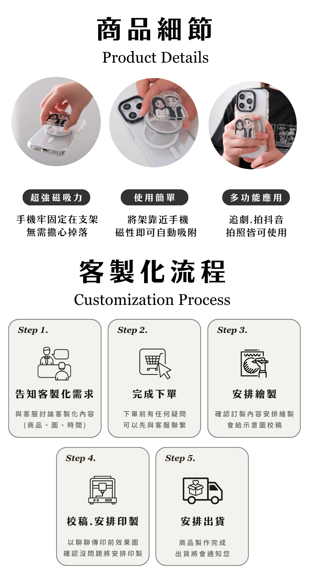 商品材質:支架PC+TPU+17顆N52磁鐵;強磁(磁力在3800-4100高斯)、造型圖案為壓克力