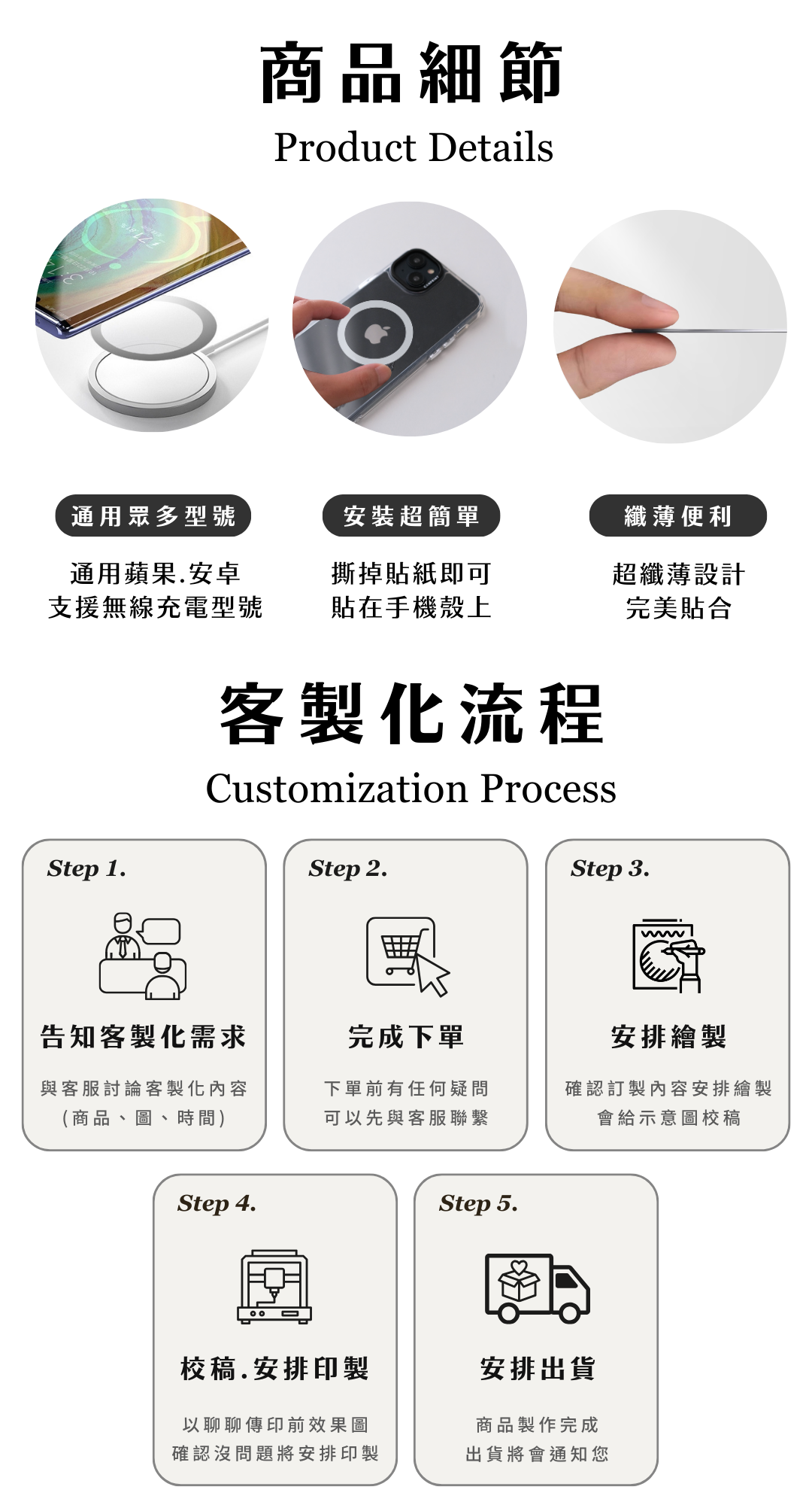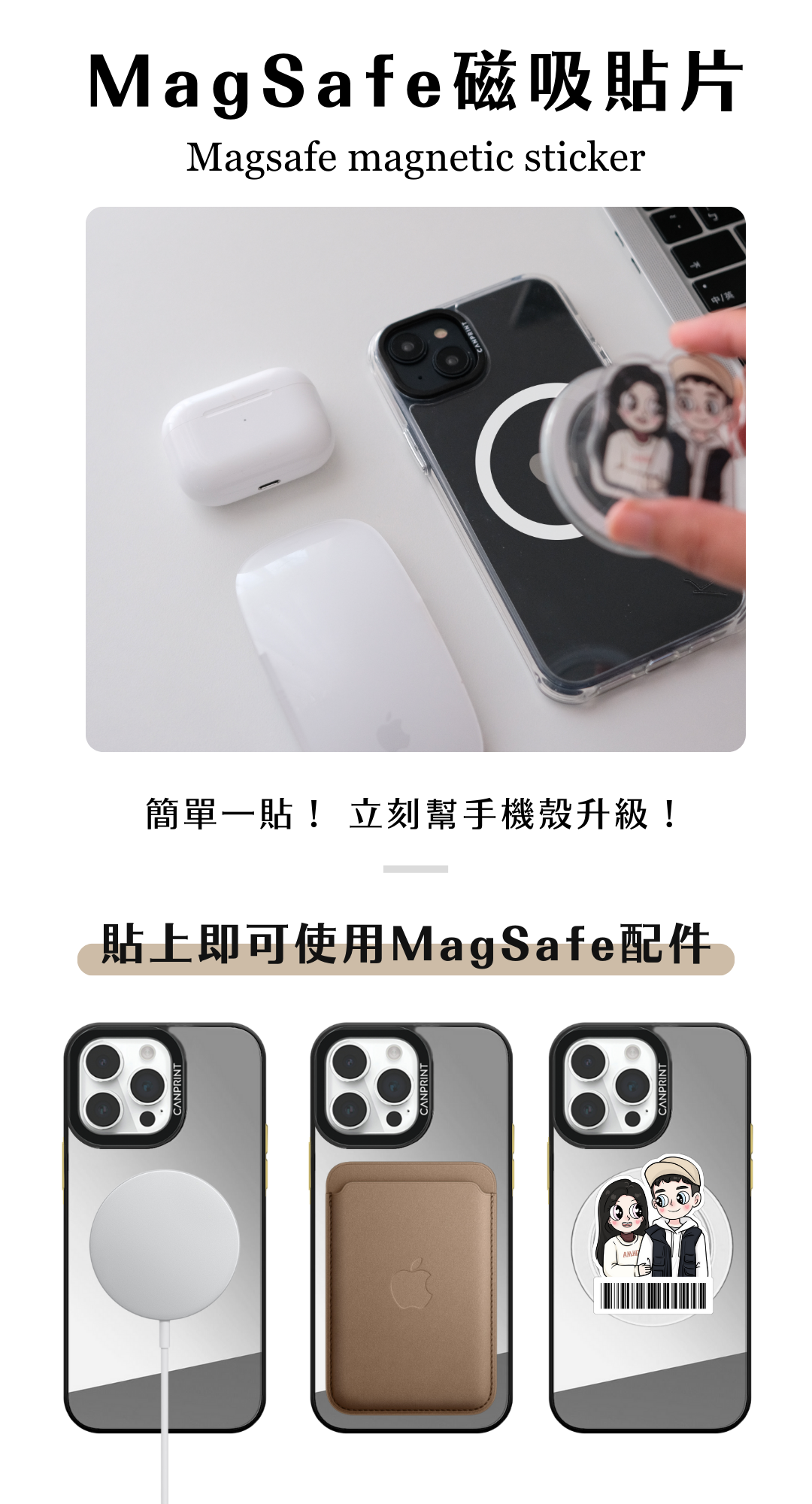 ⚠️ 如手機不支援 Magsafe 但支援無線充電,只需貼上磁吸貼片於無線充電位置,即可使用Magsafe充電器進行無線充電。