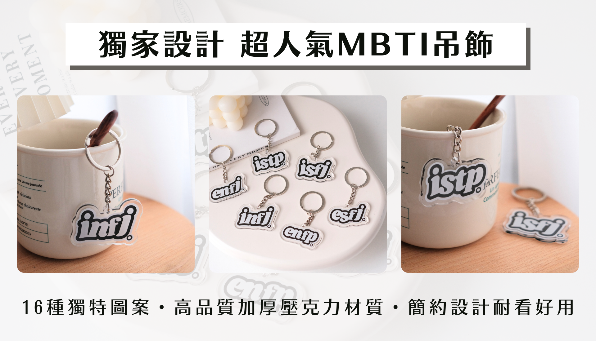 獨家設計 MBTI 16 型人格壓克力吊飾,16 款專屬圖案,高品質耐用材質,雙扣環設計可掛書包、鑰匙、耳機殼。台灣現貨,送禮自用皆適合!