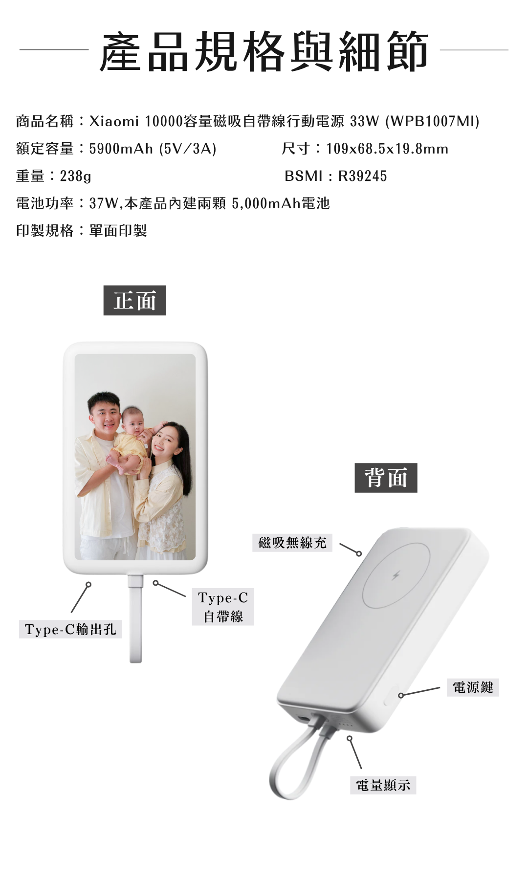 ⭐ 免帶線超方便 📏 輕巧口袋體積 旅遊&通勤必備 ⚡ 33W有線高速快充 充電速度看得見 🌡️ 搭載智能溫控晶片 💼輕量隨身,不佔空間